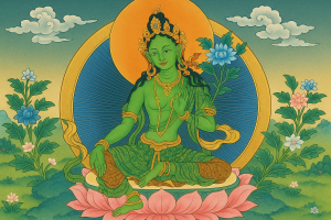 - 放光加持:觀想佛母心輪放出白光、金光,灌入你的頭頂,洗滌身心。